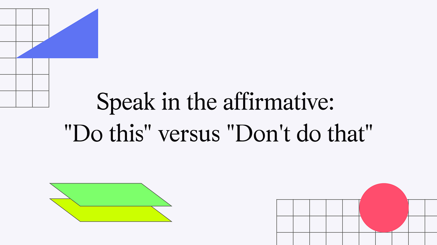 Speak in the affirmative: "Do this" versus "Don't do that"
